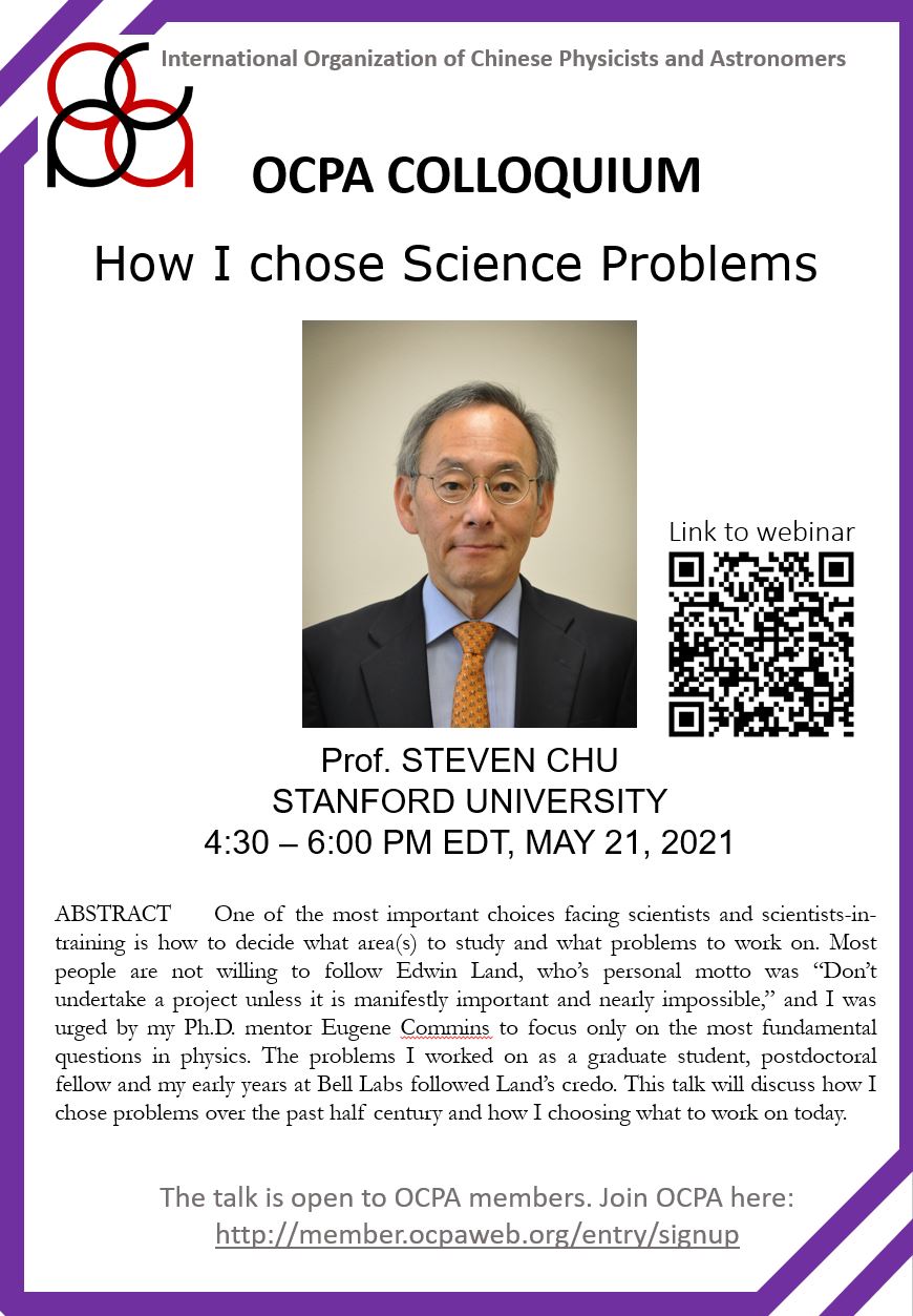 We are excited to announce the Colloquium by Professor Steven Chu from Standford University.